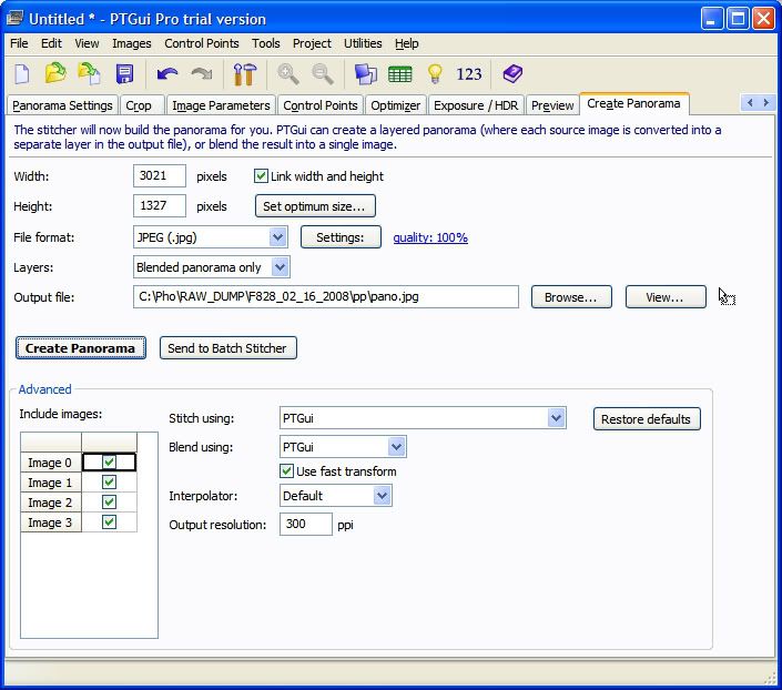 There is a vast array of controls and settings. One of the feature is "No need to keep the camera level: PTGui can stitch rotated and tilted images". You just take the picture and PTGui will put them together for you. Obviously some very sophisticated code in this program. It puts Photoshop's Photomerge to shame. Whoever put this together deserve $120USD if you end up stitching just one decent image.